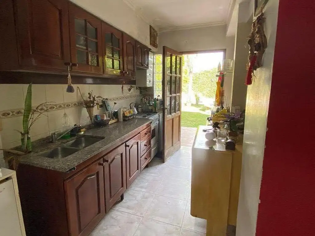 En la planta baja se encuentra el living- comedor con ventana al patio verde, con pileta de 3 X 6 mt, cocina, cochera pasante y baño social.