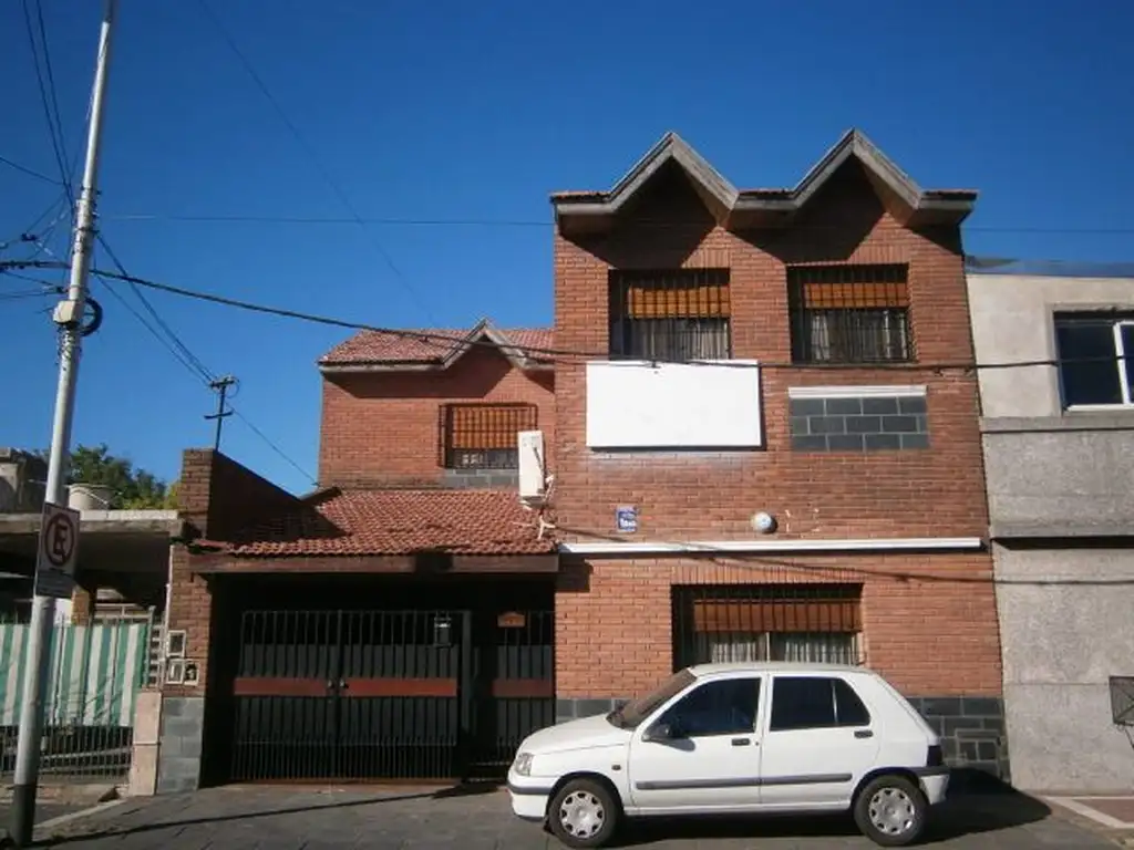 Es un inmueble de 6 ambientes, edificado en 2 plantas, con una gran solidez constructiva y reciclado hace 25 años. La casa tiene una altísima cantidad de metros cuadrados cubiertos que el total son 240 m2, ubicada sobre una calle que transita mucho tráfico y varias líneas de colectivos. La propiedad puede ser dividida en 2 departamento o bien puede tener el destino de un inmueble para dos familias, teniendo 2 accesos que pueden funcionar en forma independiente. Las comodidades en Planta Baja son las siguientes: garaje cubierto (5,85 x 4,00) con piso de cerámica rústica y revestido con ladrillos a la vista; comedor grande (9,00 x 4,11) con piso de granito y arcada divisoria, escritorio (3,06 x 2,90) con piso de porcelanato y ventana al garaje; baño completo reciclado, con piso y revestido en cerámica; cocina (3,02 x 2,98) con piso en granito, revestida en cerámica, equipada con muebles de bajo mesada y alacenas en melamina y pasaplatos; comedor diario (3,40 x 3,03) con piso de granito; 1ª dormitorio (3,00 x 1,55) alfombrado; habitación auxiliar (3,00 x 2,80) con piso de cerámica; patio (5,00 x 4,50); y quincho (5 x 3) con piso de cerámica y techo en tejas. Piso 1: entrada independiente, baño compartimentado con piso y revestido en cerámica, mesada de mármol travertino y 2 box; 2ª dormitorio (3,00 x 1,55) alfombrado; 3ª dormitorio (3,90 x 2,08) con piso de cerámica; 4ª dormitorio (3,45 x 3) alfombrado; 5ª dormitorio (4.35 x 4,08) con piso de parquet, y placard de 2 puertas y 2 bauleras con otro igual con las misma medidas; patio (3 x 3) con piso de balosas y baulera aérea de 3 x 2,50).