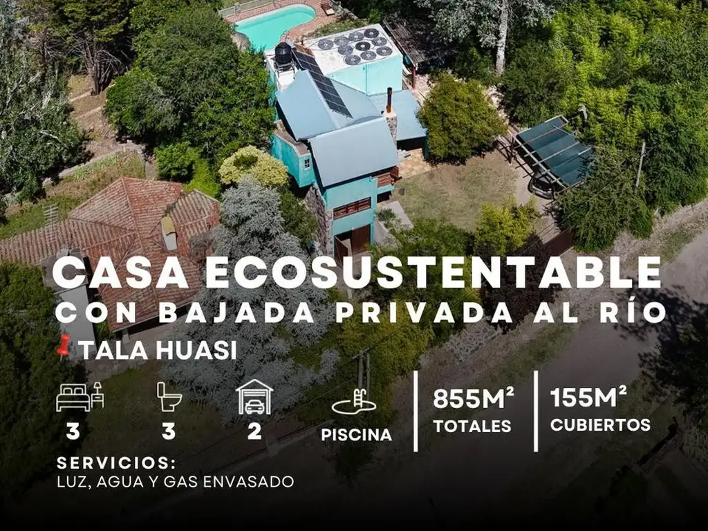 VENTA CASA ECOSUSTENTABLE CON BAJADA PRIVADA AL RÍO. ¡COMPLETAMENTE EQUIPADA! TALA HUASI, PUNILLA