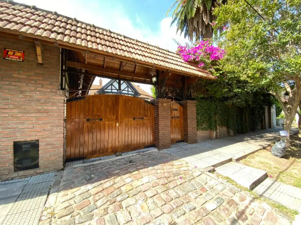 Magnifico e impecable chalet ingles de 3 dormitorios, sobre lote de 20x30, 600 M2 totales y 290mts2 cubiertos. Amplio parque al frente con piscina climatiada, entrada para varios autos con portón automatizado, garage semicubierto paralelo para 2 autos y amplia baulera, comodo quincho completo (posibilidad de crear playroom), hogar a leños, parrilla, horno y anafe, lavavajilla, muebles a medida empotrados de cedro, baño, amplios ventanales y equipo de aire acondicionado frío/calor.