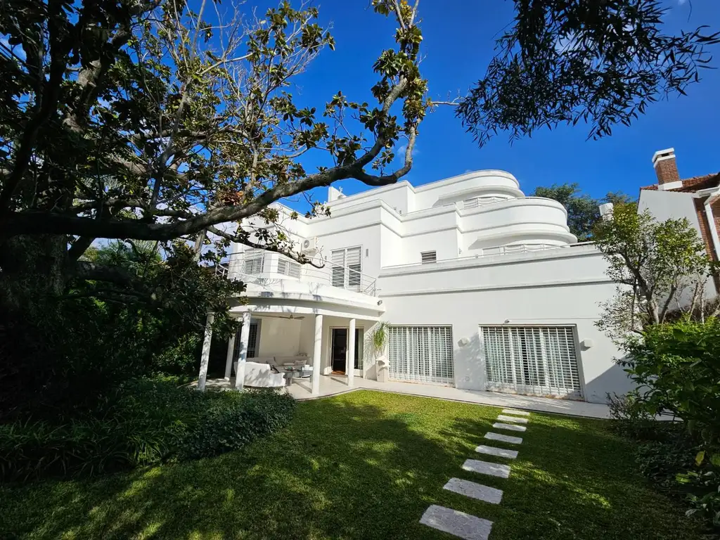 Mágico y exclusivo jardín parquizado - galería al lado de una añosa magnolia - quincho con parrilla con techo de glicinas - pileta de 14 x 4 toda recubierta de venecitas con jacuzzi en el solarium húmedo , climatizada - gimnasio exterior con vista a la pileta y baño para la pileta - deposito - Perforación a 80 mts -