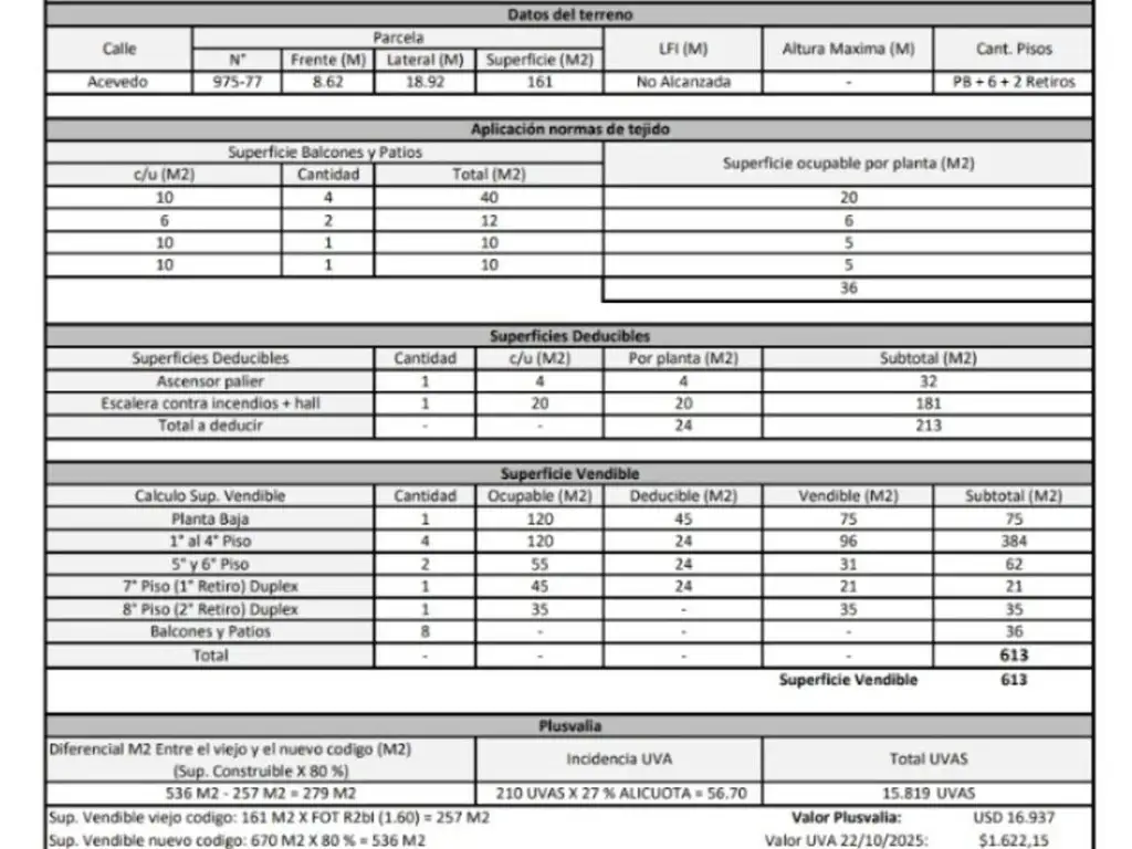Total Construible vendible 613 m2