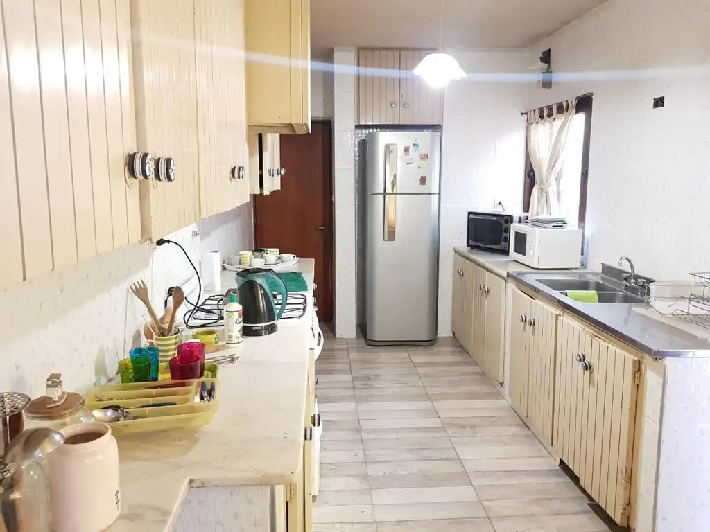La propiedad se desarrolla en dos plantas. Planta baja cuenta con hall de entrada, amplio y luminoso living comedor con vista a jardín interno y a la calle, con pisos entablonados. Comedor de diario, cocina integrada con sector de lavandería, de la misma se accede a un patio tender. Un baño toilette. Dos dormitorios con placares cada uno con vista al patio, un baño completo con ante baño. Patio. Cochera cubierta para un vehículo chico.
