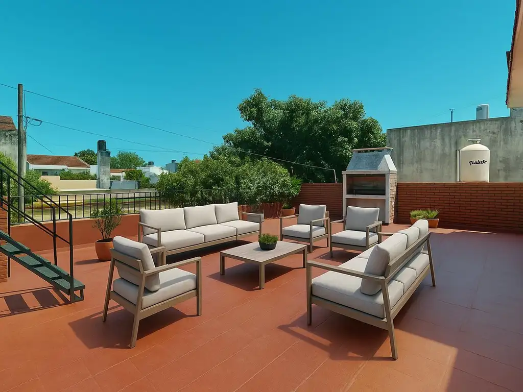 Terraza abierta de grandes dimensiones con Parrilla
