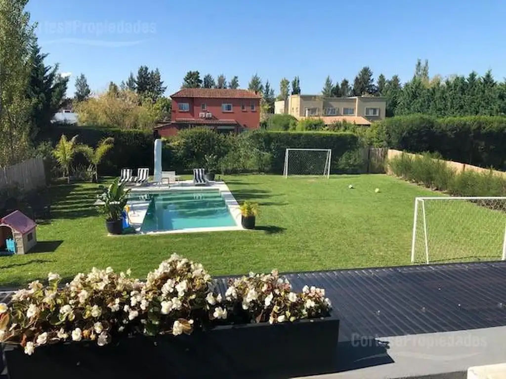 Desarrollada sobre un lindisimo lote de 1020 m2, tiene una superficie cubierta de 178 m2, mas una galeria totalmente cerrada de 35 m2, techo con madera y policarbonato y paneles de vidrio corredizo que le crea un gran ambiente mas, para uso en invierno y verano.