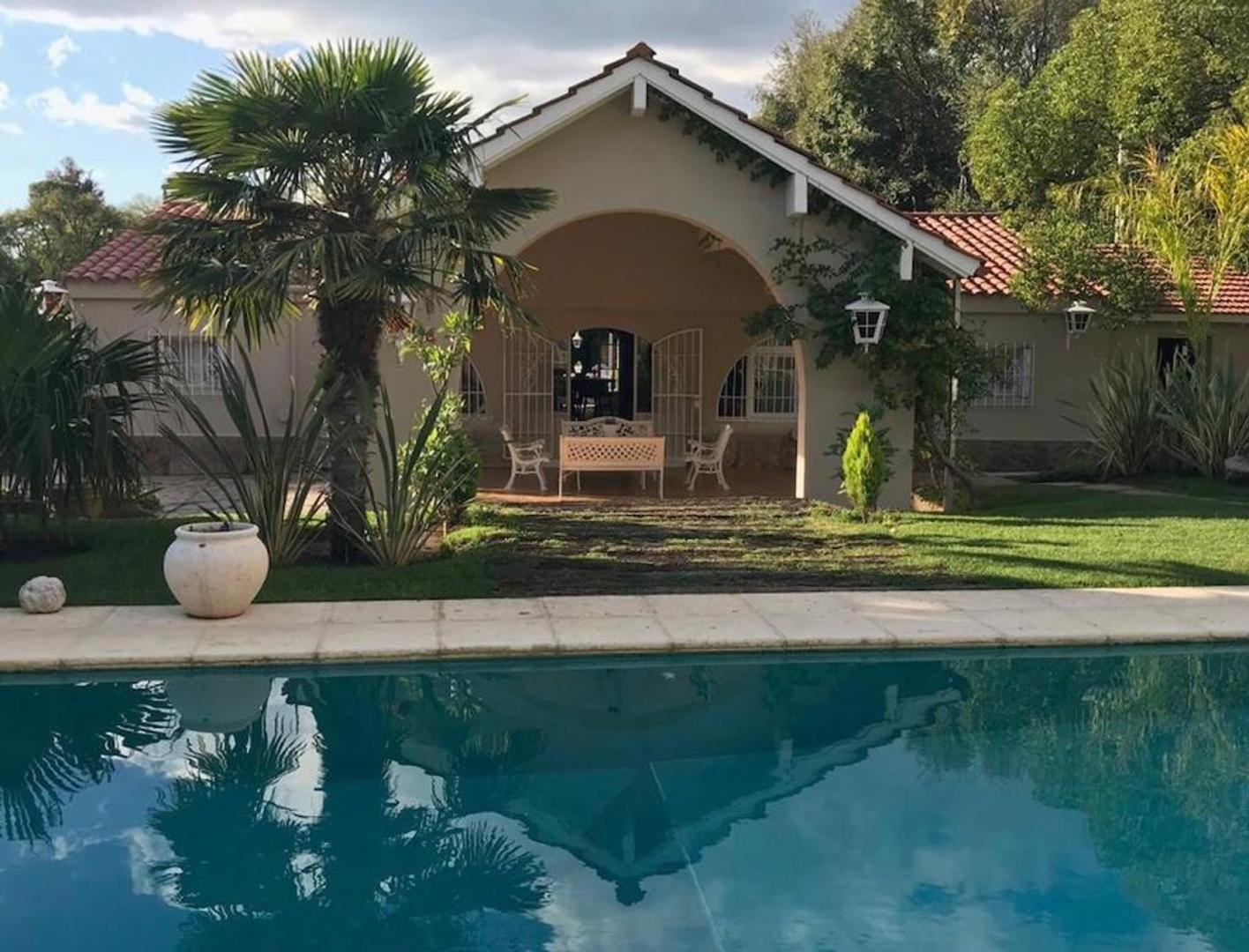 2 piscinas, una de 5 x 10, y otra a continuación con agua climatizada de 6 x 3, solárium, juegos de mesas, sillas y reposeras.