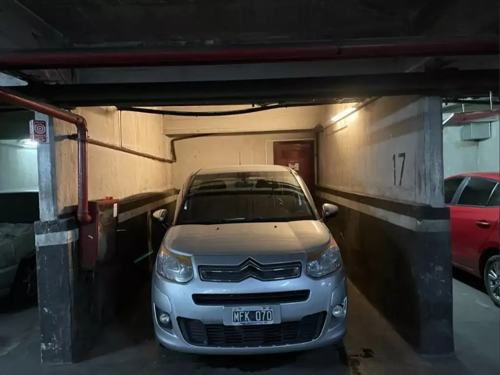 Cochera cubierta y fija de 8.74m². Antigüedad 40 años. Ubicada en 1º subsuelo. Acceso por rampa fija. Expensas $20.000 (Enero 2026). Vigilancia.