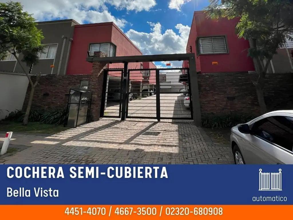 COCHERA FIJA EN PLANTA BAJA SEMI CUBIERTA DE 13.75 M2 (2.50 X 5.50 MTS) CON ACCESO POR PORTÓN AUTOMÁTICO.