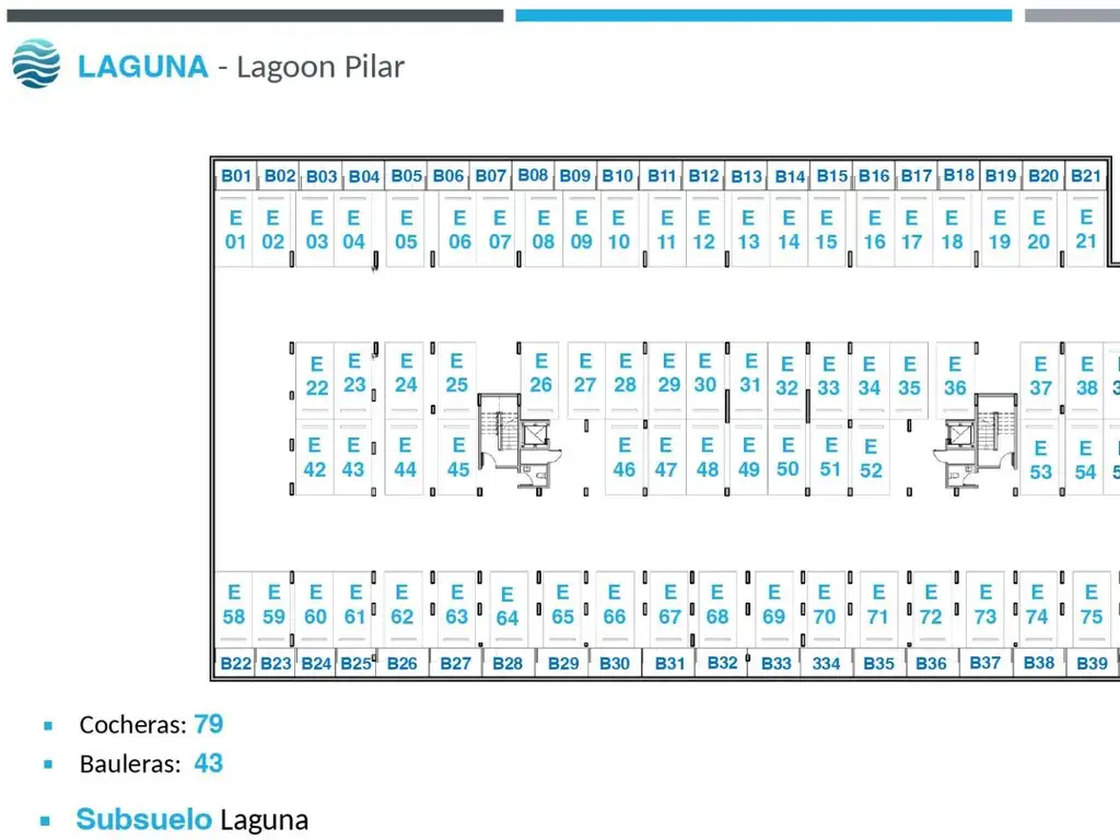 Laguna es uno de los últimos condominios en construcción. Se erigen sobre las playas, con retiros y orientaciones que favorecen las vistas al agua y los jardines, manteniendo la privacidad y el mejor aprovechamiento de la luz. Cuentan con ascensores y cocheras semicubiertas (pérgolas). Terminaciones de calidad.