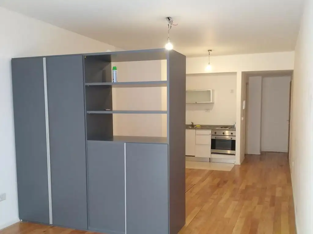 Cocina integrada, artefacto de cocina eléctrico, conexión para lavarropas, calefón eléctrico y calefacción por losa radiante con medidores individuales. .