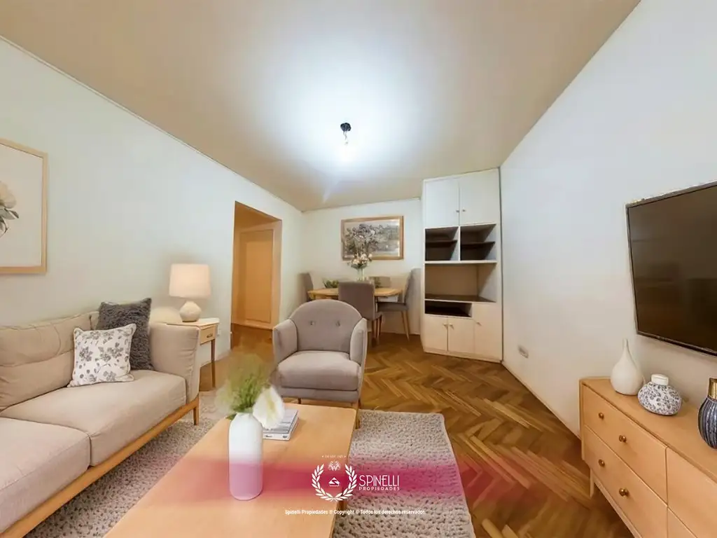 ~ Paredes pintadas en tonalidades claras conservan su natural luminosidad. Pisos revestidos en parquet en living comedor,distribuidor y dormitorio.