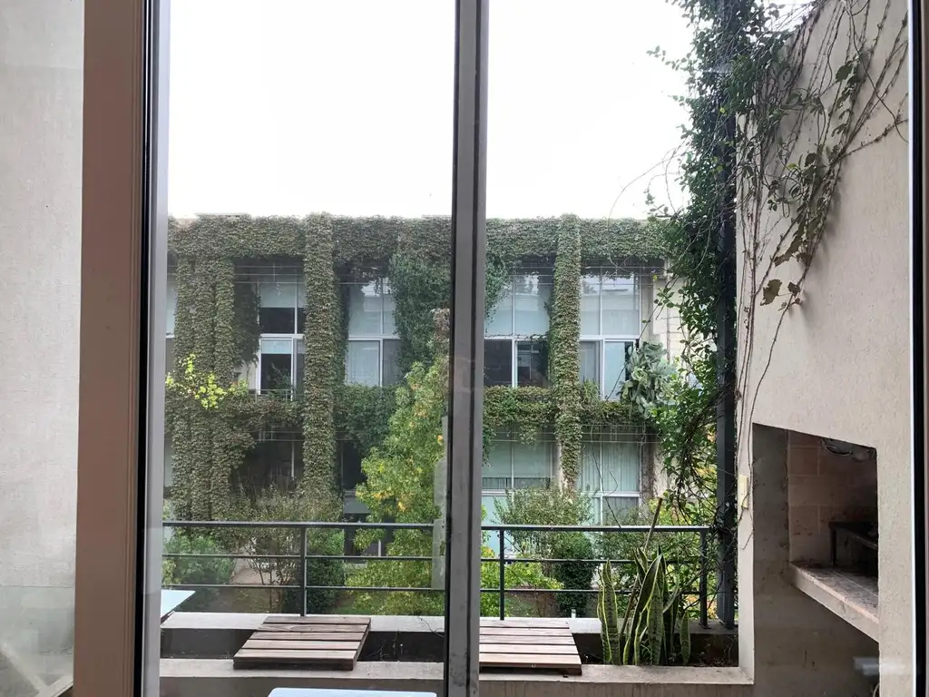 Espacio para escritorio. Balcon con parrilla y lindisimas vistas al jardín común con pileta de natación y sum.