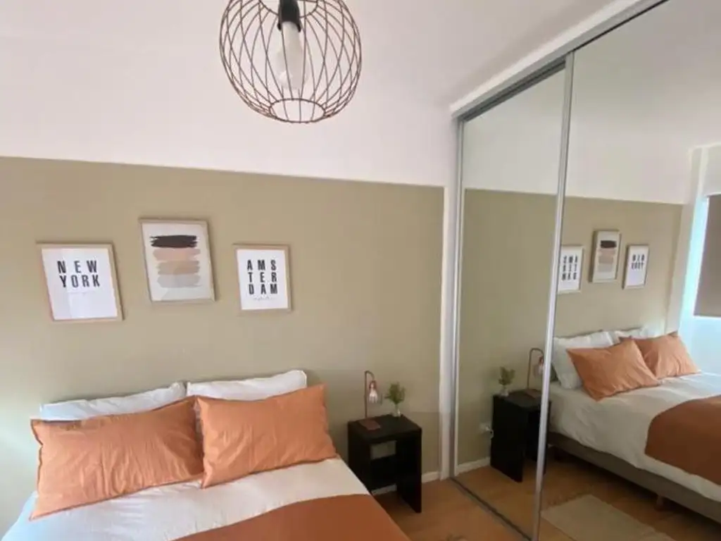 Muy cálido y bien amoblado! 2 ambientes con baño completo, amplio placard. Cocina con barra integrada al living. Balcón.