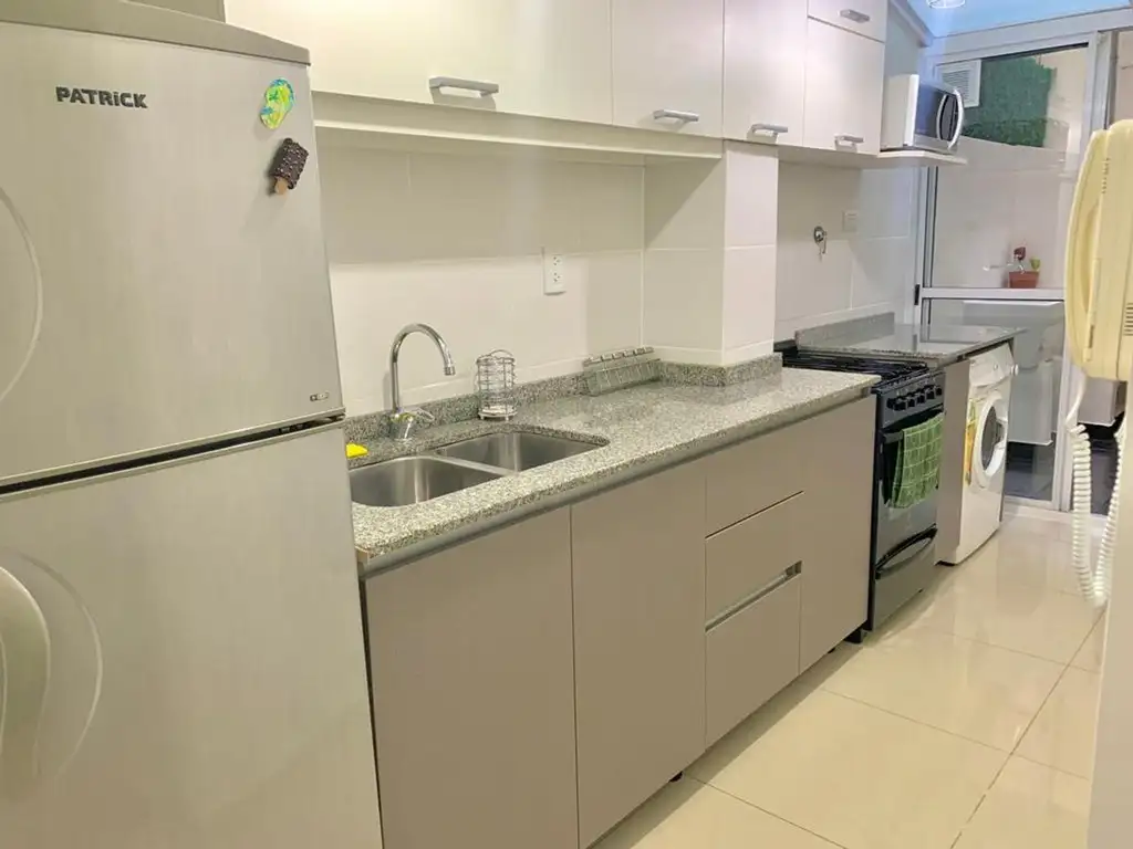 Departamento ubicado en primer piso por ascensor en edificio de 10 pisos. Hall de ingreso, cocina semi integrada totalmente equipada a nueva con salida al patio, amplio living comedor, placard en pasillo, baño completo y dormitorio con amplio placard con vista al patio.