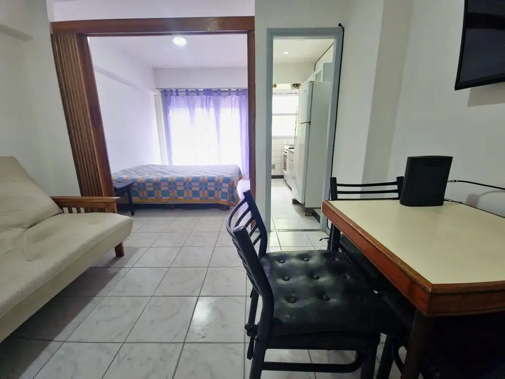 OFRECEMOS UN MONOAMBIENTE DIVISIBLE, EN UN 4° PISO, CON BALCÓN A LA CALLE, MUY LUMINOSO Y TRANQUILO, EN EXCELENTE ESTADO, IDEAL PARA HASTA 4 PERSONAS, PERO CON ESPACIO SUFICIENTE PARA QUE 2 PERSONAS SE HOSPEDEN CÓMODAMENTE.
