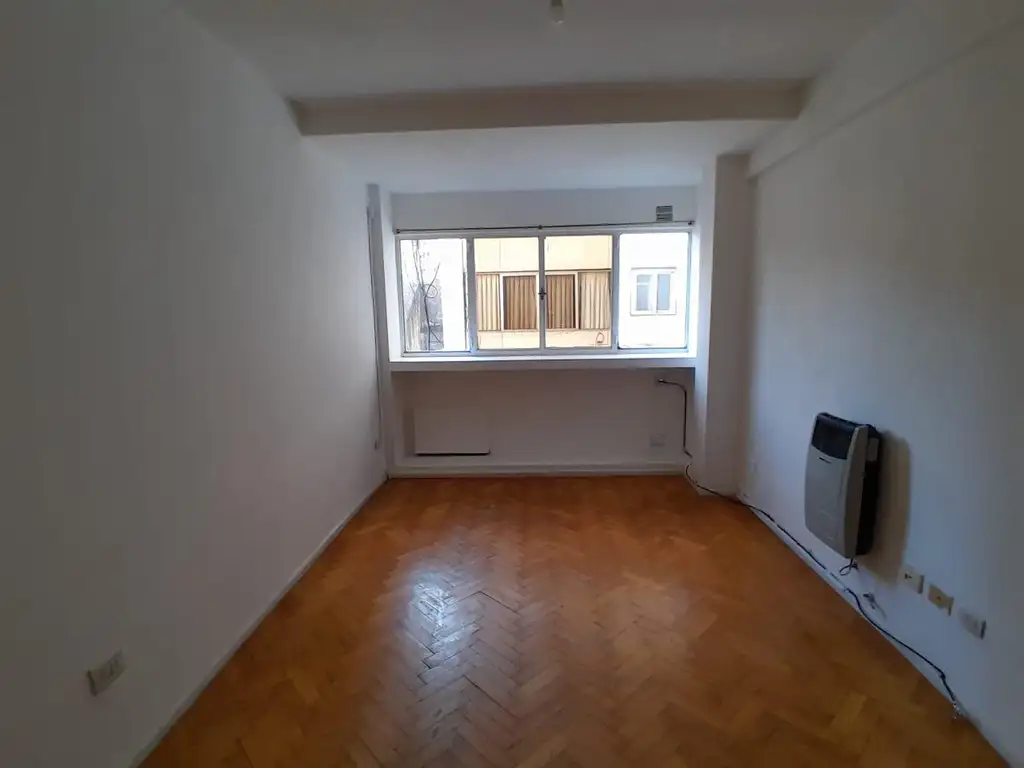 Living comedor con piso de parquet y calefactor.