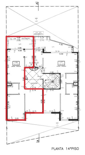 Departamento semipiso externo con orientación noreste ubicado en el piso 14.