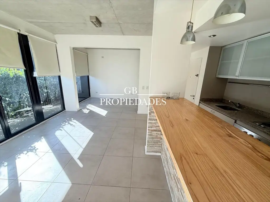 Cuenta con baño completo y cocina equipada, con barra desayunadora que separa al living-comedor. Amplios ventanales que tienen salida a un balcón, y generan mucha luminosidad. Dormitorio con placard, puede dividirse para lograr mayor privacidad.