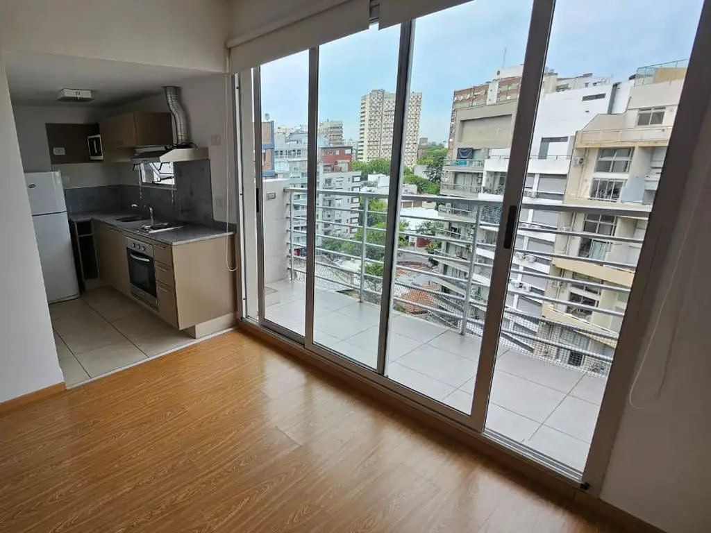 Monoambiente ubicado en el 10o al contrafrente. Super luminoso ! Con orientación Oeste.Calefacción por losa radiante individual y aire acondicionado F/C.Cocina integrada con muebles altos y bajo mesada, anafe y horno electrico, monocomando y spar.Television, microondas, heladera quedan.