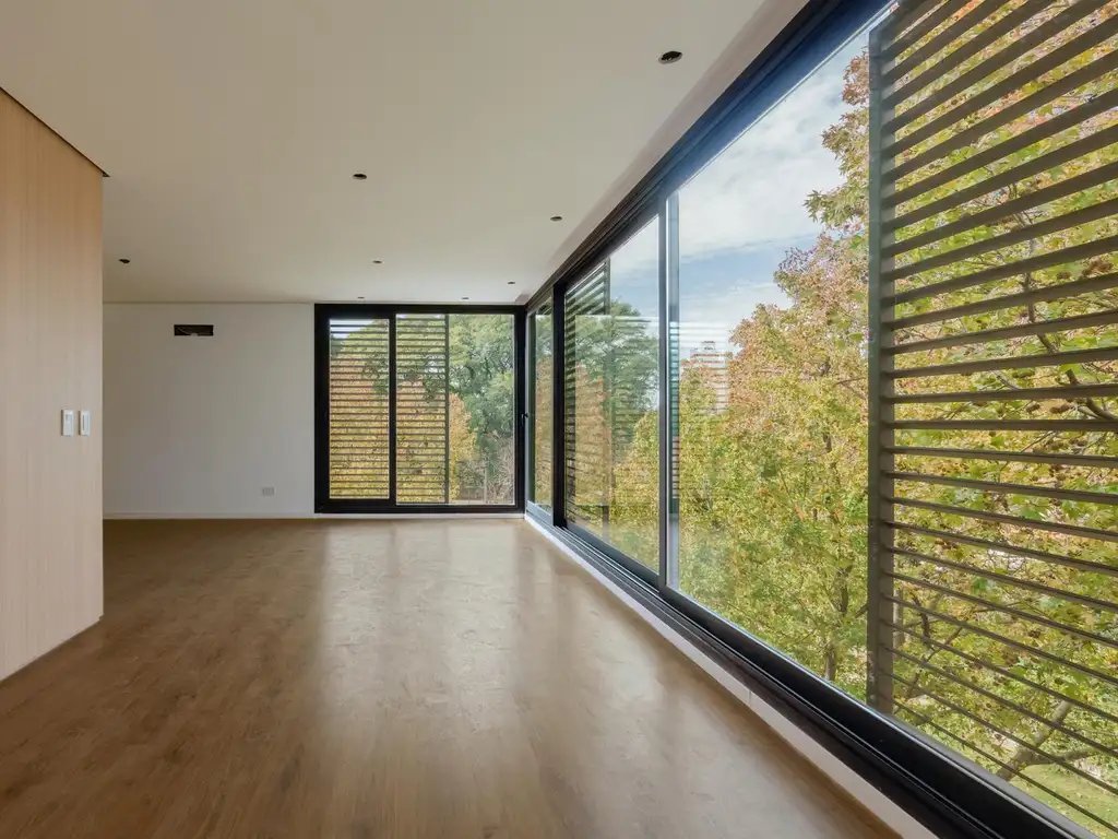 En las unidades hay instaladas aberturas Aluar A40, pisos flotantes vinílicos símil madera de primera calidad, cielorrasos suspendidos de placas de yeso, mesadas de silestone, amoblamientos y revestimientos interiores melamínicos. Tanto la calefacción como la refrigeración se resuelven con la preinstalación para sistemas multisplit inverter el cual ya esta instalado, sistema que se caracteriza por su alta eficiencia energética y a su vez permite que cada unidad exterior sea ubicada de manera oculta en la azotea del emprendimiento. El departamento esta equipado con cortinas de primera calidad, campana.