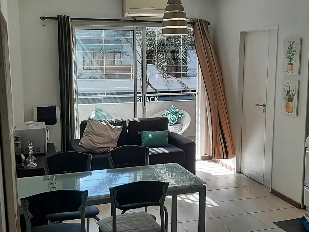 ¡Impecable departamento de 2 ambientes al frente, totalmente amoblado y equipado, con balcón y patio!