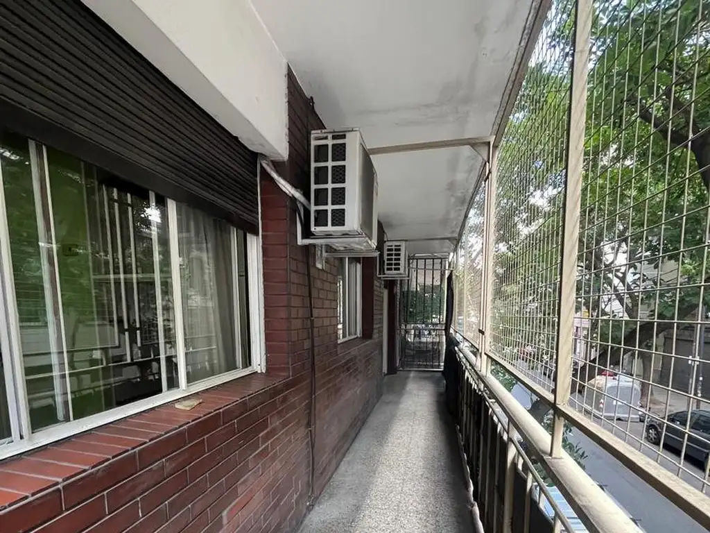 Cuenta con balcón corrido al frente, living con aire acondicionado, dos dormitorios con placar, uno de ellos con aire acondicionado, distribuidor con placar. Baño completo, cocina independiente con espacio para comedor diario y patio cubierto con lavadero.