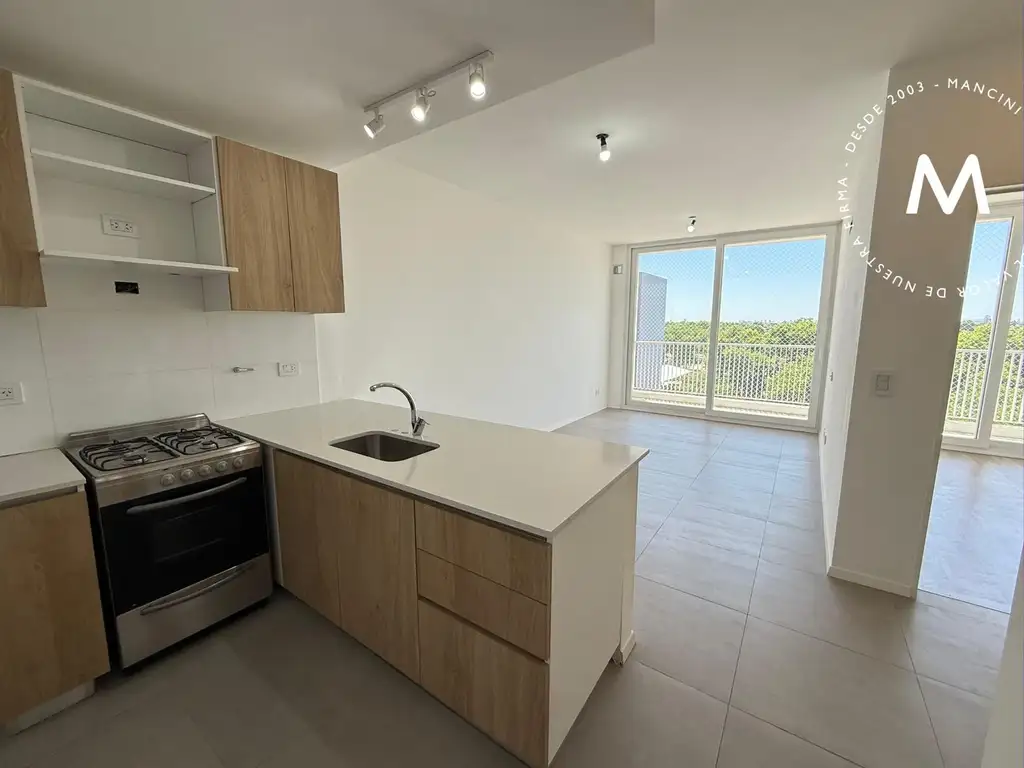 Living/comedor con salida a balcón; cocina integrada y equipada con muebles de alacena y bajo mesada; dos dormitorios con placard e interiores (el principal con salida a balcón); un baño completo. Muy luminoso, hermosa vista!