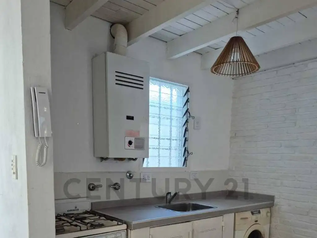 Cama de 2 plazas, Heladera, cocina, lavarropas, calefón, estufa tiro balanceado y Aire acondicionado, TV, mueble para TV, Mesa y sillas, vajilla, sabanas y toallas pequeño balcón, patio con parrilla etc.