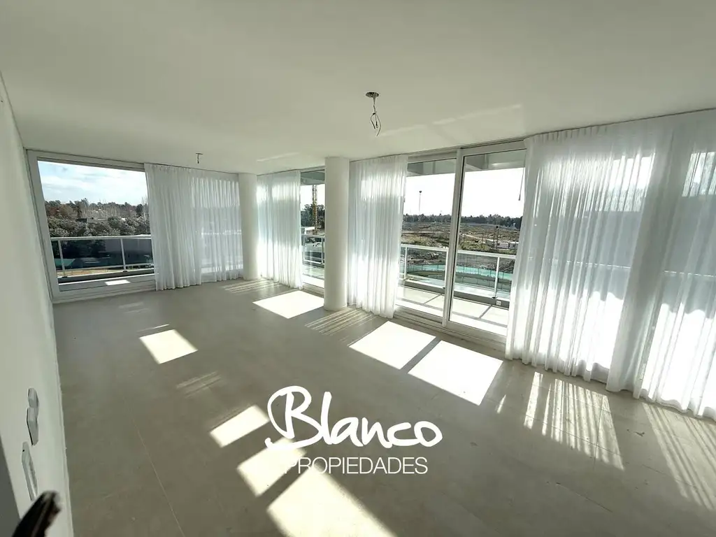 Cuenta con: espacioso living-comedor y cocina separada, ambos lugares con acceso al balcón que rodea la unidad. Toilette de recepción, 3 dormitorios, uno en suite con vestidor y los restantes comparten baño. Desde el living, tenemos acceso a una espectacular terraza de 55 metros cuadrados, con parrilla y bacha.