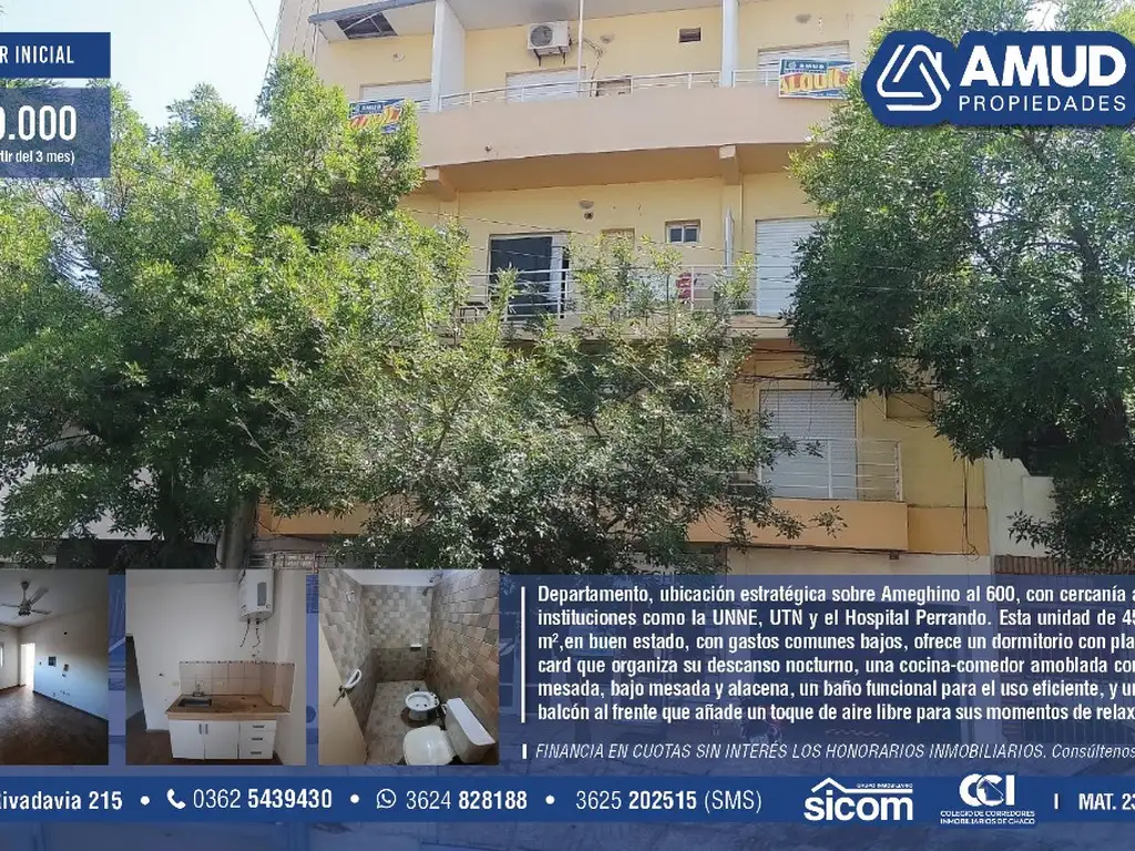 ATENCION: Esta oferta se encuentra RESERVADA. Departamento, ubicación estratégica sobre Ameghino al 600 (entre calles San Lorenzo y Arbo y Blanco) con cercanía a instituciones como la UNNE, UTN y el Hospital Perrando.