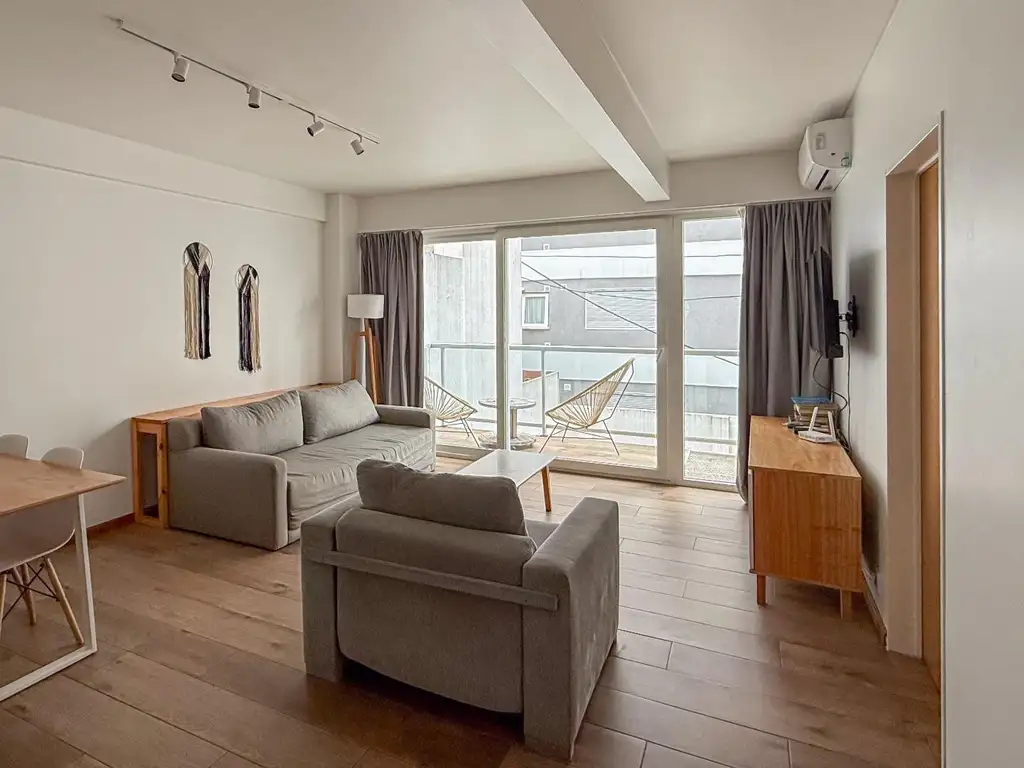 LIVING 8,20 x 4 m². Al contrafrente Piso de porcelanto simil madera. salida a balcón corrido.- aire acondicionado frio calor marca GREE
