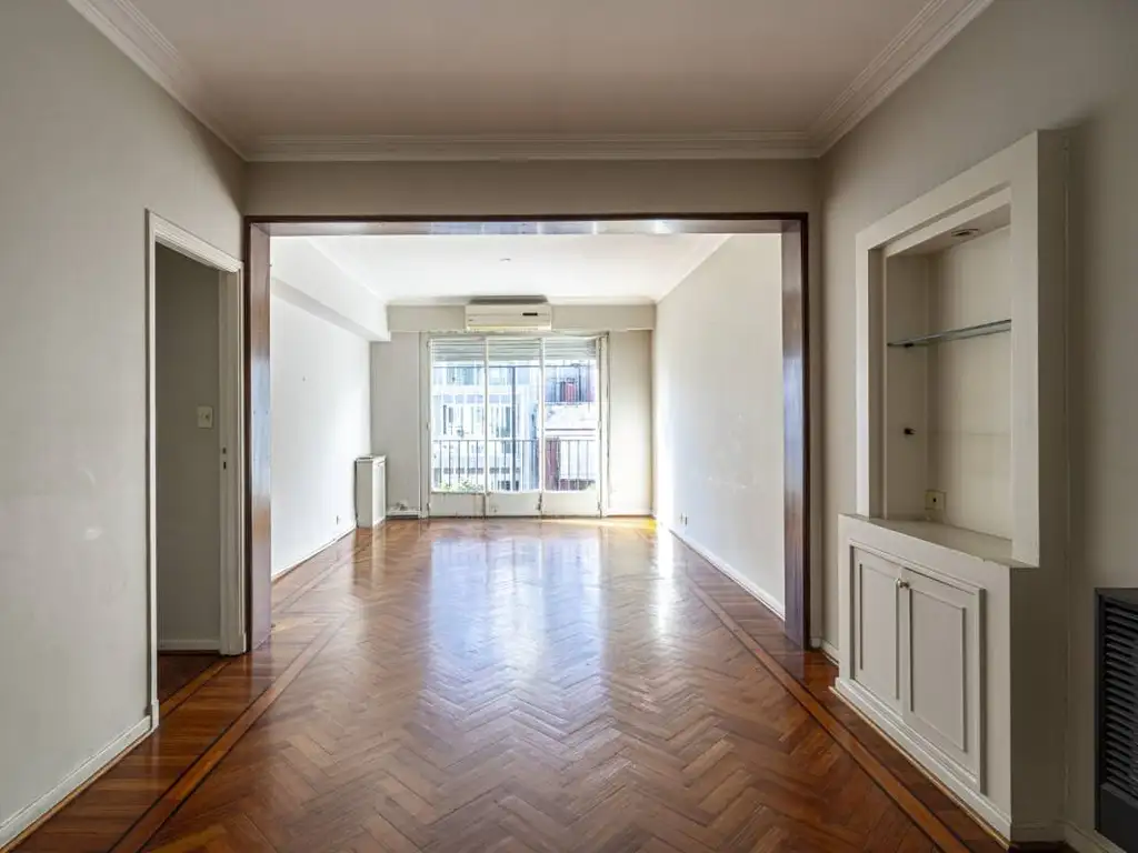 Hall, amplio Living comedor, 2 dormitorios y 1 baño. Un tercer dormitorio mas chico que se usa como escritorio o vestidor. Cocina y lavadero. Baño de servicio.