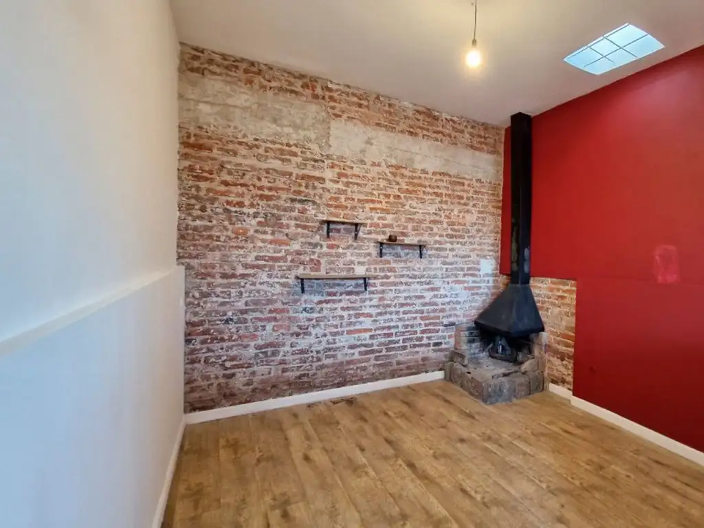 Desde el distribuidor también se accede al dormitorio , al baño completo y al living comedor. Este último ambiente cuenta con una estufa a leña y se integra a la cocina mediante una barra.