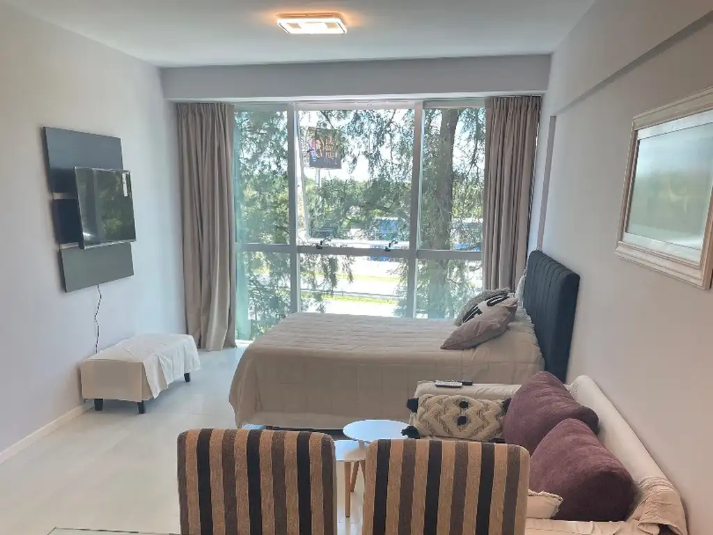 Esta totalmente amueblado, cama 2 plazas, aire acondicionado frío/calor, mesas de luz, mesa de vidrio con 4 sillas, sillón de dos cuerpos, rack con TV, con servicio de wifi, y vajilla todo de categoría.-