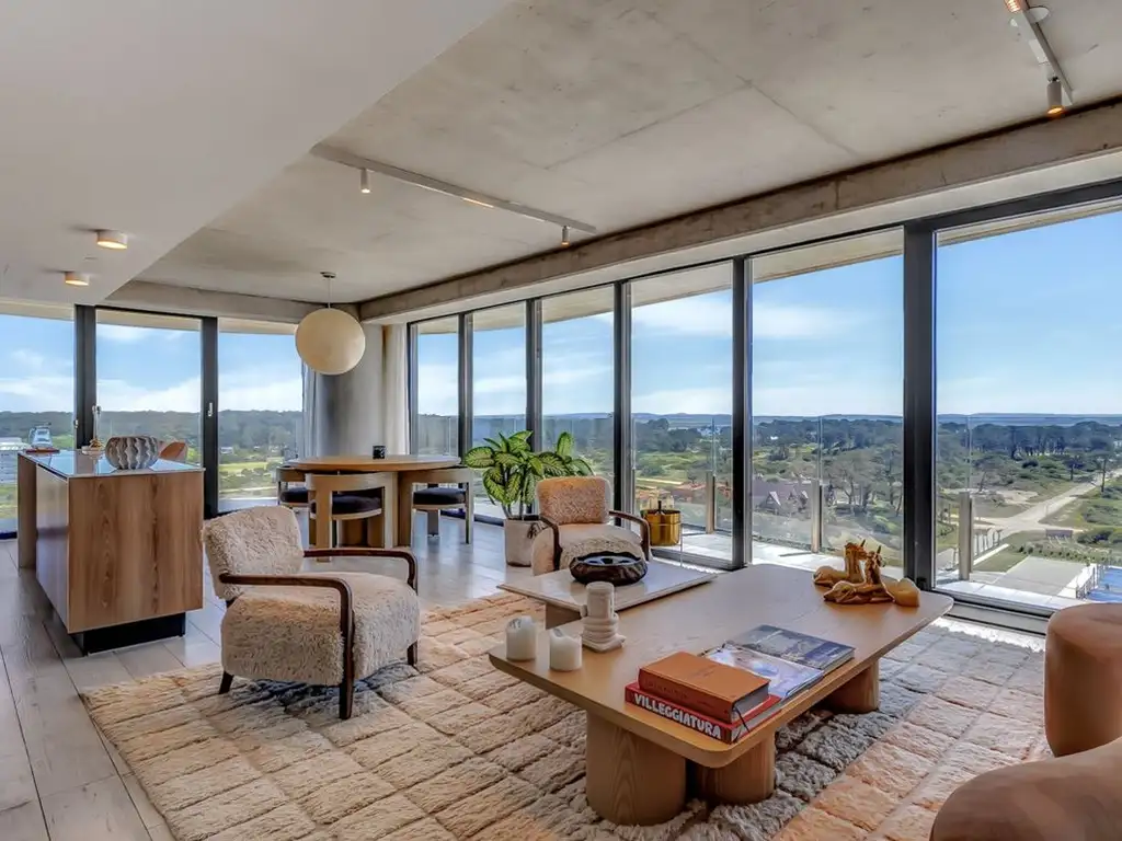 Amplia planta de 142,79 m2 totales, con una generosa terraza con una vista espectacular al mar de la Playa Brava, el bosque y el arroyo de La Barra. Tipología 1 dormitorio en suite + DEN (el DEN es un medio dormitorio) + otro baño completo + garage. Cuenta con estar, cocina americana  y comedor integrados, con salida a la terraza, al igual que la suite. Posee equipamiento de alta calidad,  fina decoración y amoblamiento premium.