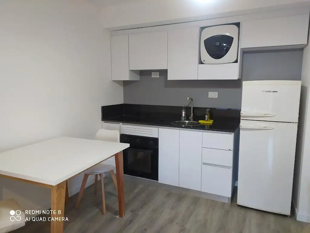 Ingreso a cocina anexa con living-comedor, salida al balcón y baño completo con ducha.