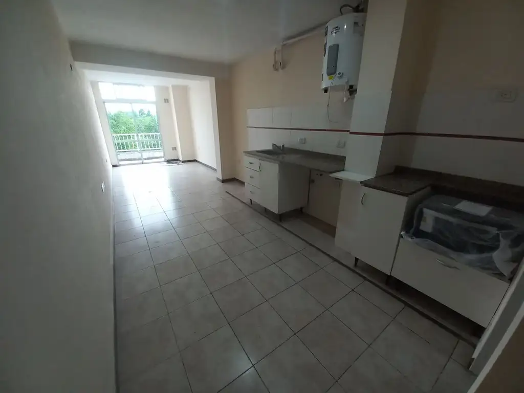 Monoambiente con mesada, bajo mesada y horno con anafe eléctrico, baño completo instalado y balcón a la calle.