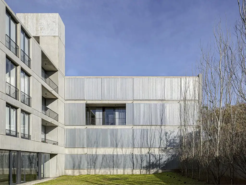 La propiedad forma parte de un proyecto arquitectónico en forma de U, que se abre hacia un espacio central verde, aportando excelente iluminación natural gracias a su estratégica orientación. El complejo cuenta con gran jardín con pileta, quincho lateral con salida al área verde y amplias circulaciones que garantizan comodidad y una experiencia espacial de calidad.