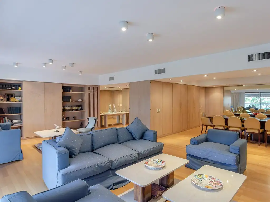 Se ingresa por palier privado al un amplia sala de recepción, biblioteca y sala de lectura. El gran living comedor y los dormitorios tienen salida al balcón corrido, con vista amplia y abierta a la imponente Av. 9 de Julio, de frente la embajada de Francia y Brasil, logrando captar la vista al obelisco por la izquierda y la recova y Av Libertador al este.
