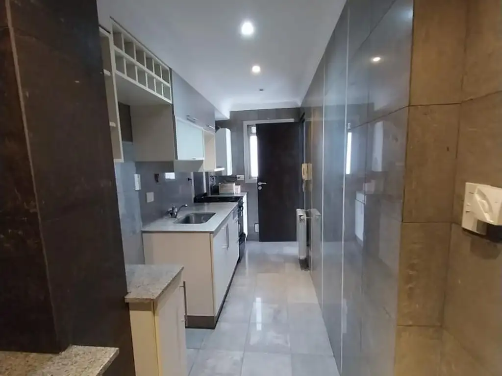 Cuenta con 1 Dormitorio con doble placard empotrado con espejo, baño completo con antebaño, cocina con aparato de cocina con bajo mesado y alacena y lavadero incorporado y vinoteca. calefacción central en todos los ambientes. Sin cochera.