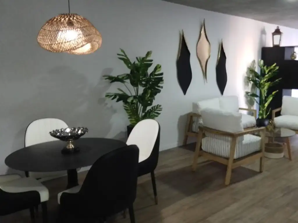 Amplio ambiente completamente amueblado. con baño completo, con placard y división Cocina con alacenas y bajo mesada, Muy luminoso. Con Heladera, horno electrico, pava electrica, somier, sabanas, acolchado, vajilla, televisor led y deco !