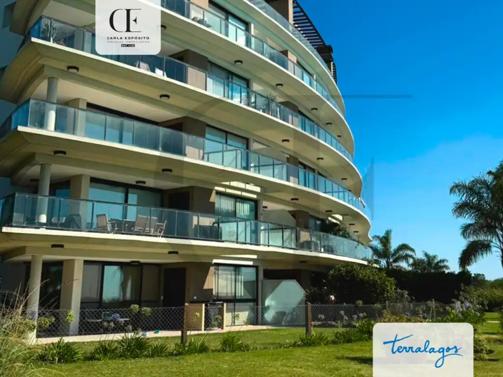 Hermoso departamento de 2 ambientes en alquiler, ubicado en el exclusivo barrio Terralagos, con jardín propio.
