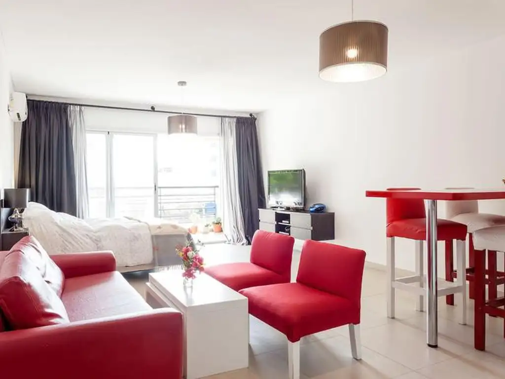Amplio monoambiente de 3.80X8 (APROX), cocina integrada con barra desayunador, baño completo y balcón al frente. Super luminoso.