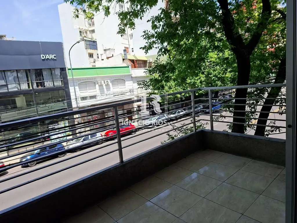 Moderno departamento Monoambiente en Alquiler en excelente ubicación. cochera propia OPCIONAL. Cocina espaciosa con mesada y anafe eléctrico, integrada al living comedor, muebles de alacena y bajo mesada. Baño completo. Gran balcón de 5m2 !. - Mat.