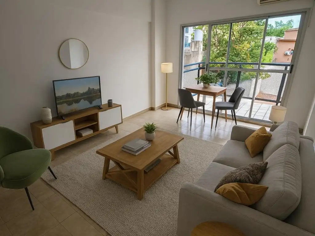 2 ambientes - estado impecable - recièn pintado - contrafrente - balcòn - vista abierta - muy luminoso - dormitorio con placard - cocina integrada - baño completo - excelente ubicaciòn - pisos flotantes - todo elèctrico.