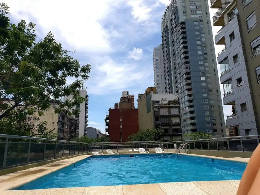 Muy luminoso. Con balcón. Cocina completa. Lavarropas. Sector dormitorio con sommier doble e importante placard. Baño completo con bañera.