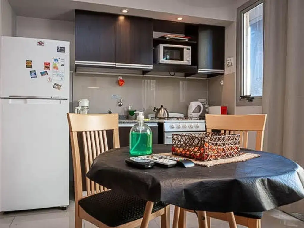 AMBIENTE VISTA PANORÁMICA ALMAGRO A estrenar. 38 m2. PISO 8, cuentan con cocina completa gas, cochera opcional, balcon de 3x1 metros, laundery, tender y agua caliente central.AIRE ACONDICIONADO FRIO CALOR + INTERNET WI-FI + VÍDEO CABLE + LED SAMSUNG 32 + HELADERA C FREEZEER, MICROONDA, LICUADORA, TOSTADORA, CACEROLAS, SARTEN, VASOS, PLATOS, CUBIERTOS, SABANAS Y TOALLAS, SERVICIO DE MUCAMA LIMPIEZA Y DESINFECCIÓN.