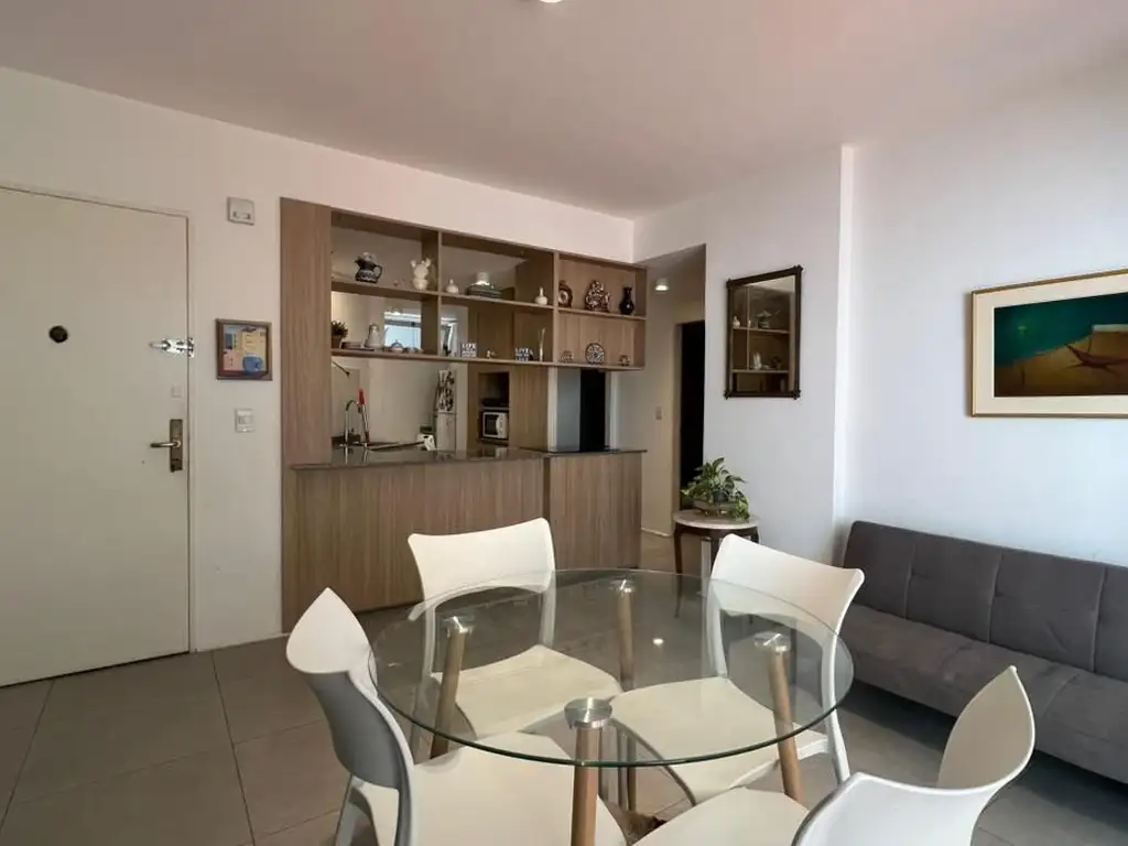 Cuenta con 2 dormitorios, principal cama matrimonial y secundario cama simple, un living comedor sillón cama con cocina integrada, mesas redonda con 4 sillas, Heladera, microondas y horno a gas y lavadero con Lavarropas.