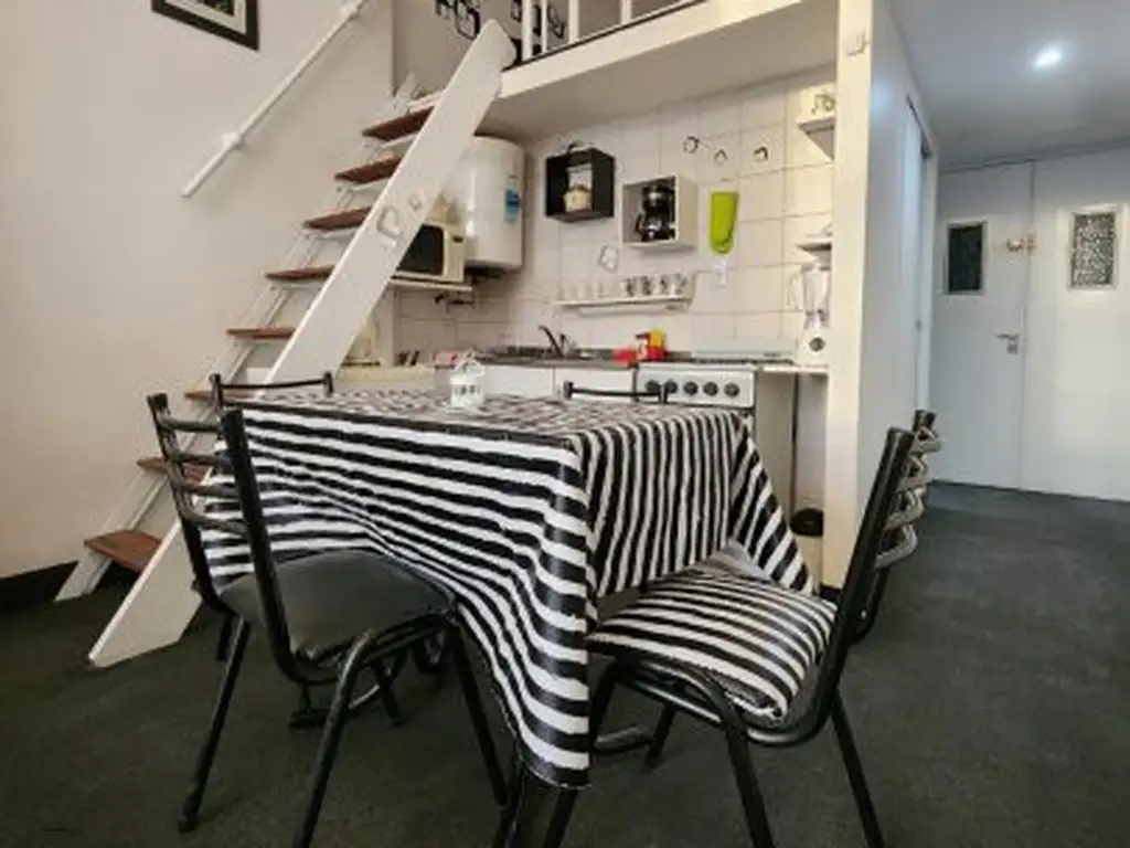 Balvanera, Azcuénaga 400, 1 amb, 35m2, $ 700,000 + luz. 02-03-26 Es un loft de 35 mts² muy luminoso y con ático. Silencioso y luminoso. Vista abierta. Totalmente equipado. Moderna decoración en blanco y negro. Dos sommiers simples que pueden unirse y formar una cama doble. Baño completo con bañera. Cocina con cocina y horno a gas, microondas, heladera con refrigerador, vajilla para 4 personas, utensilios, etc. Área de lectura, biblioteca y sofá cama en el ático. Aire acondicionado frío. Caloventor. Cortinas black-out. A 5 cuadras de la Facultad de Medicina. A unos metros de la Av. Corrientes. Capacidad para estadías largas : 2 personas.