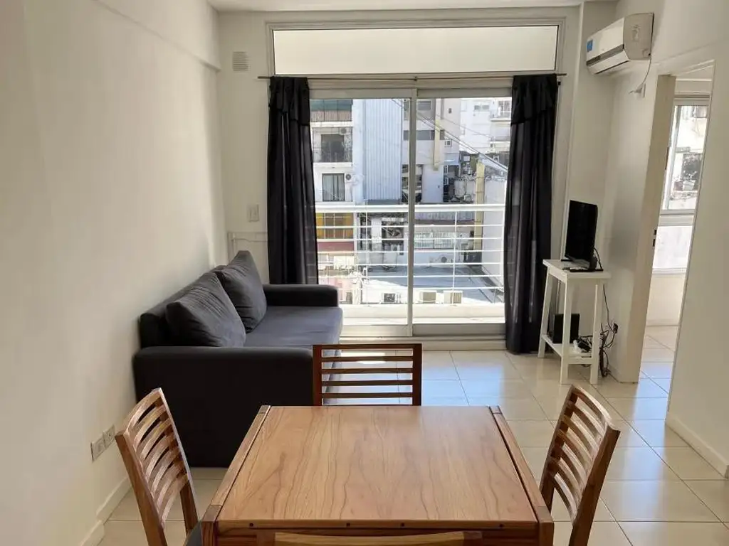 Bright and functional 1-bedroom apartment (42 m2) in Balvanera, ideal for temporary stays. Located on the 6th floor facing the back, it offers a quiet atmosphere and excellent natural light. Fully equipped, it features a bedroom with two beds, a living-dining area with sofa and air conditioning, an integrated kitchen, and a balcony. The building offers great amenities including a swimming pool, multipurpose room (SUM), and shared common areas. Perfect for comfortable and practical stays in a central location.